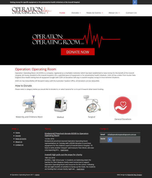 Operation: Operating Room Ltd is a local charity that raises money for the Inverell Hospital. All money donated to the Inverell Hospital is for a specified piece of equipment or for preventative health initiatives.