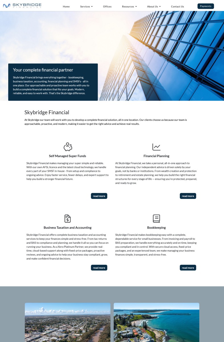 Skybridge is a Leading Financial Services Firm offering bookkeeping services, business taxation and accounting, financial planning, and self-managed superannuation funds.